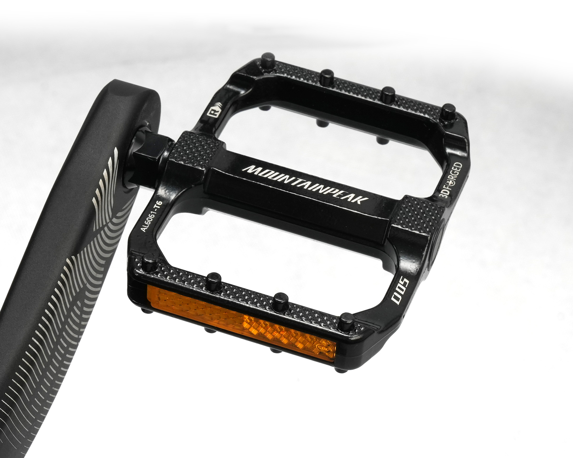Minimal profile, concave platform pedal has 8 fixed pins per side for maximum grip.